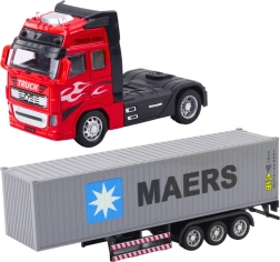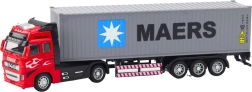 Il realistico camion container con motore pull-back entusiasmerà tutti i piccoli appassionati di tecnologia. Combina elementi in metallo e plastica resistente per una lunga durata, ha porte apribili, un grande container rimovibile e ruote gommate sterzanti per una guida fluida.