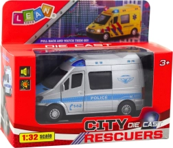 Auto della polizia in metallo 1:32 con meccanismo pull back, luci e suoni