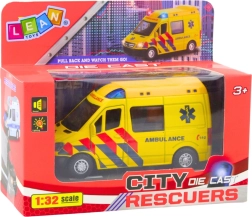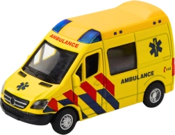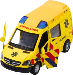 Ambulanza in metallo 1:32 con meccanismo pull-back, luci e suoni – gialla