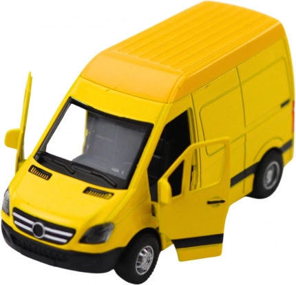 Realistico furgone giallo in scala 1:32 che combina parti in metallo e plastica di qualità per maggiore resistenza ed estetica accattivante. Offre meccanismo a retrocarica (pull back), porte apribili e effetti luminosi e sonori, ideale sia per il gioco sia come modello da collezione.