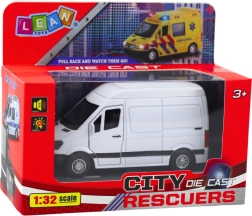 Questo furgone bianco in scala 1:32 riproduce fedelmente un classico veicolo commerciale ed è ideale sia per il gioco che per la collezione. Grazie alla robusta carrozzeria in metallo e alla lavorazione accurata, appare realistico e resiste anche a un uso frequente. Le porte apribili, le luci e i suoni aumentano il coinvolgimento nel gioco e stimolano la creatività dei bambini.