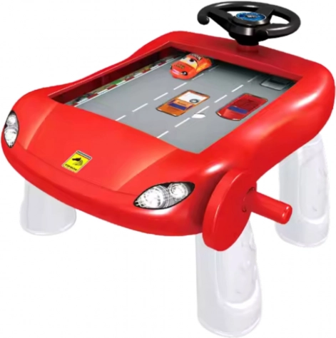 Il simulatore di guida rosso, a forma di tavolino dallo stile sportivo, ricorda il frontale di un’auto da corsa e colpisce subito per il design accattivante. I bambini controllano le macchinine tramite un selettore manuale rotante e il volante, evitando gli ostacoli e allenando il pensiero logico e i riflessi. Grazie alla robusta struttura in plastica, il gioco è stabile, resistente e ideale per l’uso quotidiano senza bisogno di batterie.