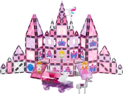 Scopri un mondo creativo con questo set da 126 pezzi, che combina il collegamento magnetico per costruzioni facili e stabili con finestrelle a vetrata da colorare. Grazie ai pennarelli inclusi, i bambini possono creare propri motivi colorati e sviluppare fantasia, motricità fine e pensiero logico. I mattoncini rosa semitrasparenti hanno un aspetto accattivante e trasformano ogni creazione in un vero gioiello.