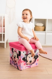 Arricchisci la cameretta con un elemento pratico e divertente a tema MINNIE MOUSE. Questo box contenitore pieghevole con coperchio solido non serve solo per riporre giochi, libri o costruzioni, ma anche come comoda pouffe per sedersi. Grazie alla forma cubica e alle dimensioni standard, si adatta alla maggior parte degli organizzatori e scaffali in legno.