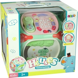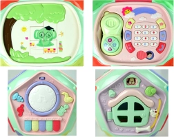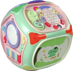 Questo colorato cubo interattivo a forma di casetta unisce diversi giochi educativi in un unico giocattolo. Ogni lato offre un’attività diversa che invoglia il bambino a esplorare e sviluppa sensi e abilità. Gli effetti luminosi e sonori stimolano udito e vista, mentre gli elementi meccanici allenano la coordinazione occhio–mano.