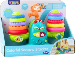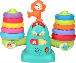 La bilancia interattiva a forma di tenero leoncino insegna ai bambini i principi di pesatura ed equilibrio. Le braccia oscillano in base al numero e al peso degli anelli posizionati, sviluppando in modo naturale il pensiero logico e i concetti matematici di base. I pezzi colorati di diverse dimensioni invitano a classificare, confrontare e impilare.