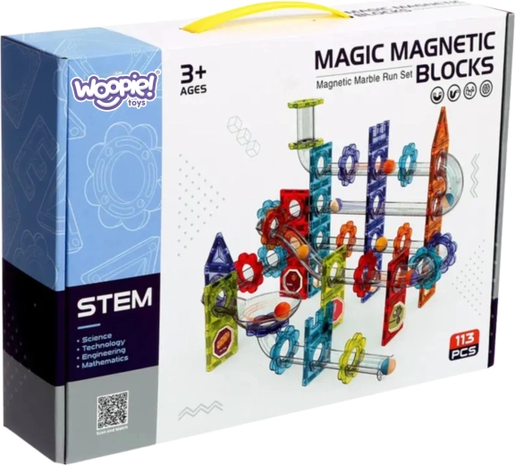 Scopri il mondo della creatività e della fisica con il set costruttivo WOOPIE: pista a biglie magnetica con 113 pezzi. Tubi trasparenti, tessere colorate e magneti potenti permettono di costruire piste multilivello stabili, su cui i bambini esplorano concretamente gravità e movimento. Ideale per sviluppare pensiero logico, spazio-percezione e motricità fine – ore di divertimento intelligente per bambini dai 3 anni.
