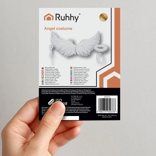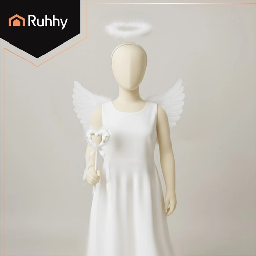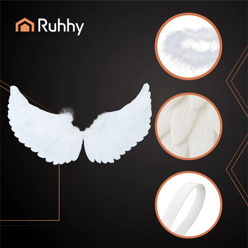 Il set RUHHY in candido bianco dona a ogni travestimento un tocco etereo. Gli elastici mantengono le ali salde e confortevoli sulla schiena, mentre la delicata lavorazione “a piume” risulta elegante e fotogenica. Il kit completo eleva subito il tuo look: basta indossarlo per brillare.