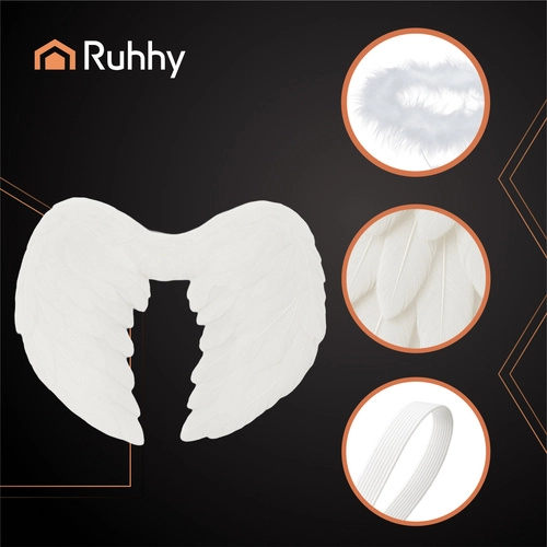 Crea un’atmosfera angelica in pochi secondi. Il set di ali d’angelo con aureola RUHHY è leggero, comodo e di grande impatto visivo: ideale per personaggi come angelo, fata, elfa e fantasy. Il bianco candido e la finitura piumata creano un look etereo che risalta dal vivo e in fotografia.