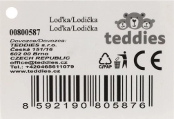 Dettagli stampati della cabina e del ponte con “attrezzi” d’acqua ispirano i bambini a inventare storie di capitani, pescatori e missioni nautiche.