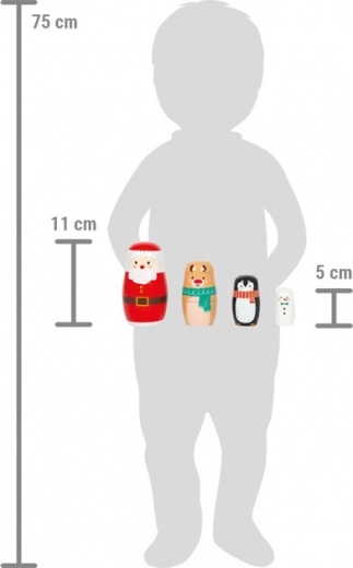 Scoprite la magia del Natale con il set di matrioske in legno SMALL FOOT. Le figure laccate a colori si aprono facilmente e i pezzi più piccoli scorrono all'interno di quelli più grandi. Questo incoraggia i bambini a esplorare, allenare la pazienza e sviluppare la motricità fine.