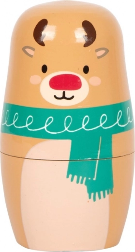 Delizioso set di matrioske in legno con motivi di Babbo Natale, renna, pinguino e pupazzo di neve, che porta un'atmosfera festiva in ogni casa. Bambini e adulti si divertiranno a impilare e inserire le figure in base alla dimensione, attività che supporta la motricità fine, la coordinazione mano-occhio e la concentrazione. Il giocattolo è anche una decorazione natalizia elegante per la cameretta e il soggiorno.