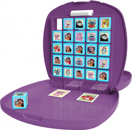Questo ingegnoso gioco da viaggio unisce regole semplici a una tattica avvincente. La valigetta di plastica apribile funge da plancia con griglia per girare le tessere illustrate. I giocatori si alternano posizionando e ruotando le tessere per creare una fila vincente degli stessi personaggi di Lilo & Stitch, bloccando al contempo l’avversario.