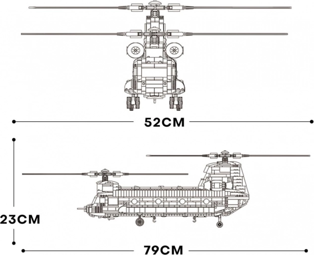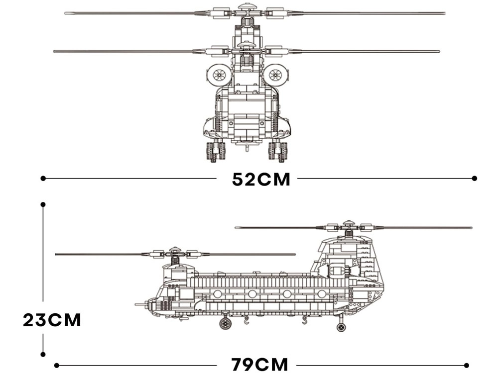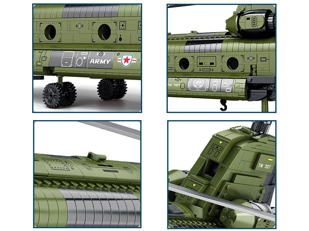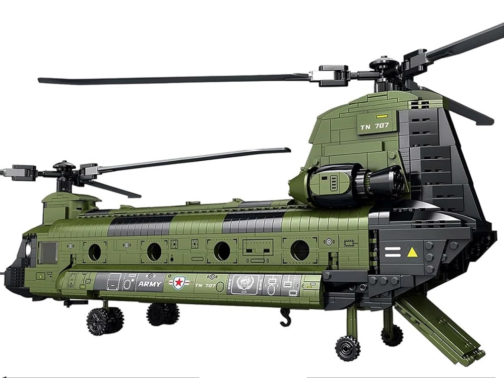 Costruisci il leggendario CH-47 CHINOOK con 1451 pezzi e goditi dettagli realistici come i doppi rotori, rampa e porte apribili e una fusoliera dettagliata. Il grande modello (ca. 79 × 52 × 23 cm) offre un ottimo piacere di costruzione, è compatibile con i marchi di mattoncini più diffusi e spicca in ogni collezione.