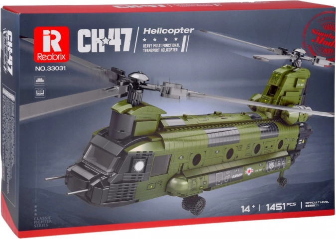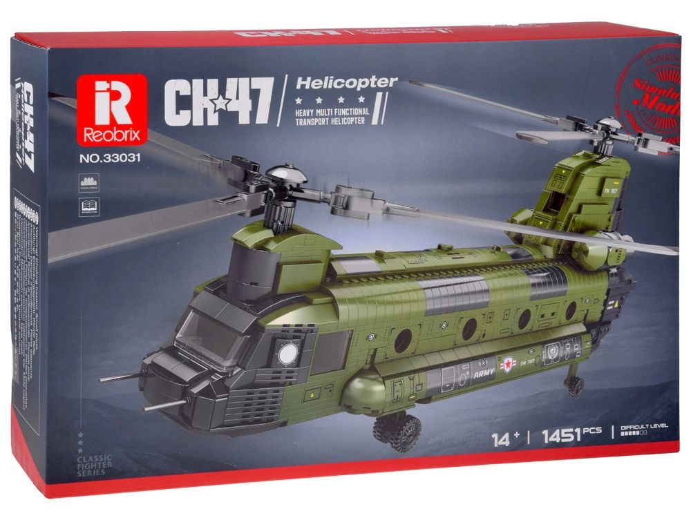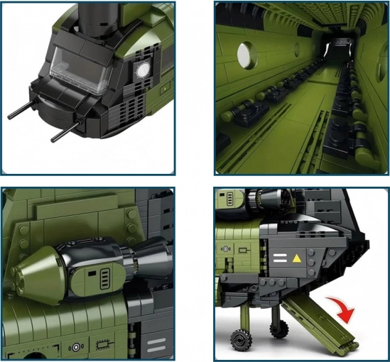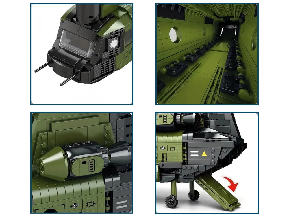 Questo modello dettagliato dell’elicottero da trasporto CH-47 CHINOOK del marchio Reobrix entusiasmerà gli appassionati di aviazione, tecnica e militaria. L’attenzione alle funzioni realistiche – dai rotori in tandem completamente rotanti alla rampa di carico apribile fino agli interni curati – rende il set una scelta perfetta per costruttori dai 14 anni in su.
