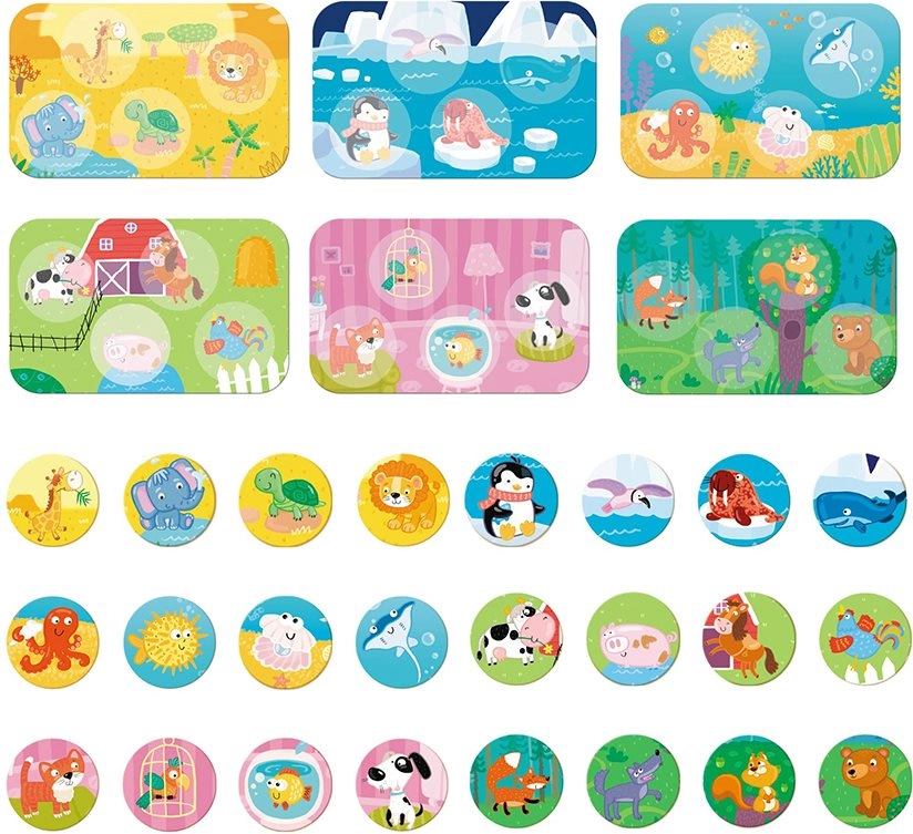 Questo affascinante gioco da tavolo si basa su un principio semplice: i giocatori hanno la propria tabella e vi abbiano progressivamente i gettoni corretti con gli animali. Chi riempie per primo l’intera scheda vince. Ideale per bambini dai 3 anni, sia con i genitori che in gruppo.