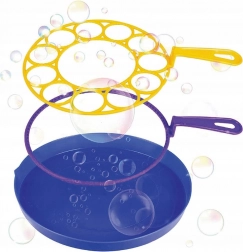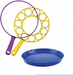Questo colorato set di bolle è ideale per il giardino, il parco giochi e le feste di compleanno. Grazie ai due tipi di cerchi potrai creare facilmente sia bolle giganti sia una nuvola di piccole bollicine. Il grande volume di 450 ml assicura un divertimento lungo e senza interruzioni.