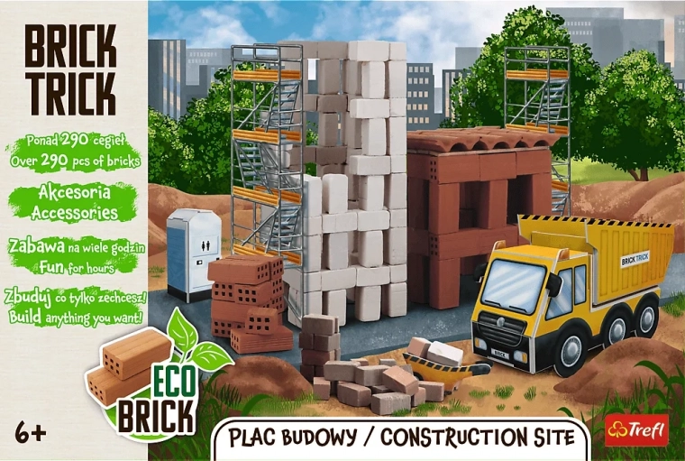 Costruisci il tuo modello con veri mattoncini d’argilla e legno! Il set Trefl Brick Trick Cantiere XL offre 290 pezzi, che incollerai con colla solubile in acqua, completerai con listelli di legno e decorerai con accessori. Costruire seguendo le istruzioni o la propria fantasia sviluppa abilità manuali, immaginazione e concentrazione.