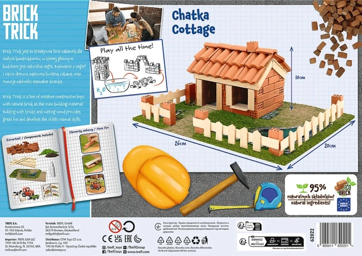 Scopri il set Trefl Brick Trick Eco Baita, che permette ai bambini di costruire passo dopo passo dalle fondamenta fino al modello finito con tetto, recinzione e cortile. Veri mini mattoni, legno e accessori decorativi creano l’aspetto autentico di una piccola casa di campagna. Dai vita alla costruzione finita con figurine di carta e accessori tematici.
