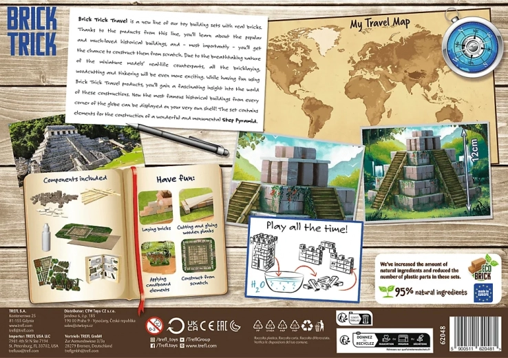Trefl Brick Trick Travel: Piramide con 210 mattoncini in argilla. Materiali realistici, colla solubile in acqua, costruzioni ripetute e sviluppo della manualità.