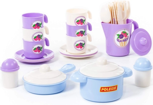Il set da tè Nastěnka per 6 persone è la scelta perfetta per piccoli cuochi e chef. Nella confezione troverai tutte le stoviglie e gli accessori necessari che colpiscono con il loro colore e motivi giocosi. Il set è confezionato in modo compatto in una rete e le dimensioni sono 164 x 140 x 155 mm.