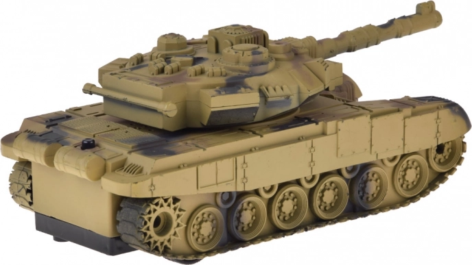 Goditi battaglie dinamiche con il carro armato RC dettagliato in mimetica desertica. Il controllo remoto a 27 MHz consente una guida fluida avanti/indietro, sterzate e rotazione completa a 360°. La torretta può essere ruotata manualmente di 360° e gli effetti luminosi e sonori amplificano il realismo.