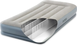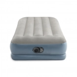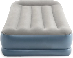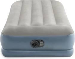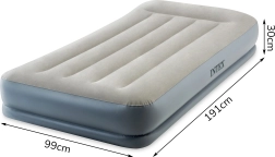 Il materasso gonfiabile singolo INTEX con dimensioni 191 × 99 × 30 cm è ideale per gli ospiti, il campeggio e i viaggi. Dispone di una pompa elettrica integrata per un rapido gonfiaggio, una superficie in velluto morbida e setosa per il comfort e la moderna tecnologia Dura-Beam/Fiber-Tech per stabilità e lunga durata. Inclusa toppa di riparazione.