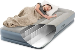 Goditi un sonno confortevole ovunque. Questo materasso singolo INTEX combina PVC resistente con una superficie floccata (in velluto), piacevole al tatto e meno scivolosa. La pompa elettrica integrata fa risparmiare tempo e fatica: è pronta all’uso in pochi minuti.