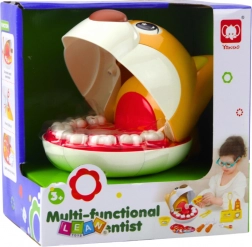 Un giocattolo divertente ed educativo che introduce i bambini, giocando, al mondo dell’odontoiatria. Grazie alla testa del cagnolino con denti rimovibili e al ricco set di accessori, i piccoli dentisti potranno provare la pulizia, il controllo e il trattamento. Lo specchietto illuminato, gli 8 denti rimovibili e gli strumenti realistici sviluppano la motricità fine, la fantasia e le corrette abitudini di igiene orale.