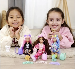 Pettina, intreccia e decora i lunghi capelli castani di Lucy con mollettine colorate e pettinino. Ideale per piccole stylist.