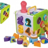 Questo incastro è ideale per i bambini più piccoli grazie ai suoi colori vivaci e alle forme diverse da incastrare. Su ogni lato del cubo ci sono aperture pensate per inserire forme, lettere e numeri, il che stimola i bambini ad apprendere e a scoprire in modo ludico il mondo che li circonda.
