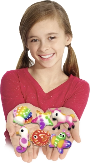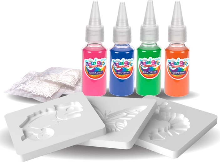 Scopri la creazione divertente con AQUA GELZ, un set che permette ai bambini di realizzare facilmente colorate figurine in gel. Mescola la speciale polvere con l’acqua, scegli lo stampino, riempilo con i gel colorati e immergi per poco tempo. In un attimo l’immagine piatta si trasforma in una morbida figurina 3D che esce dallo stampo da sola.