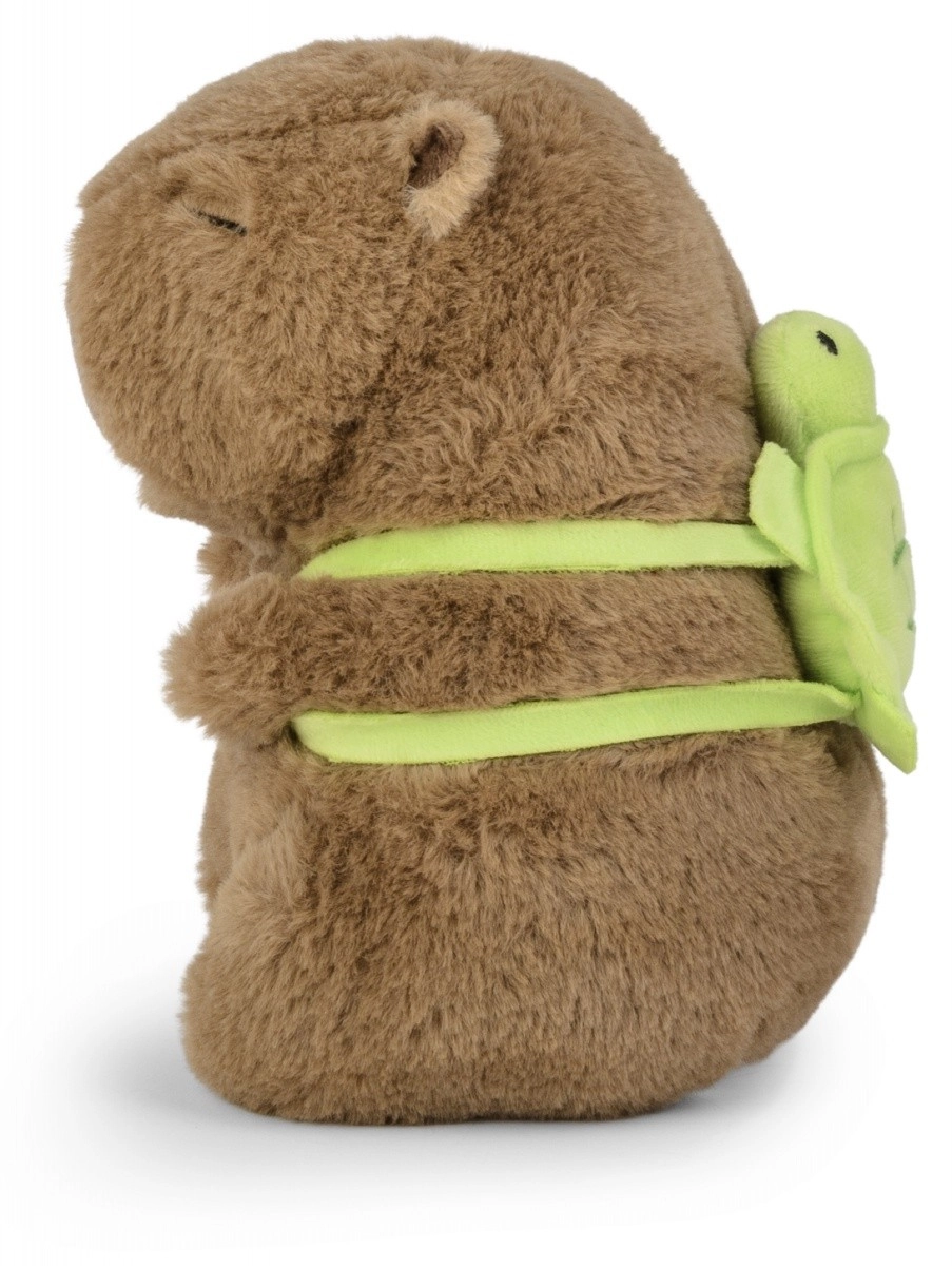 Questa capibara di peluche combina una superficie morbida e soffice con un originale zainetto a forma di tartaruga, saldamente fissato e che non intralcia le coccole. Grazie alle dimensioni compatte di 21 cm è perfetta per le manine dei bambini, per il letto e per i viaggi.