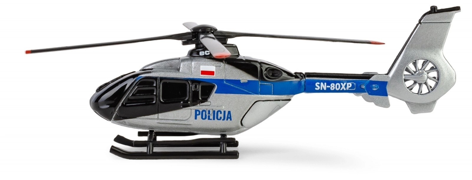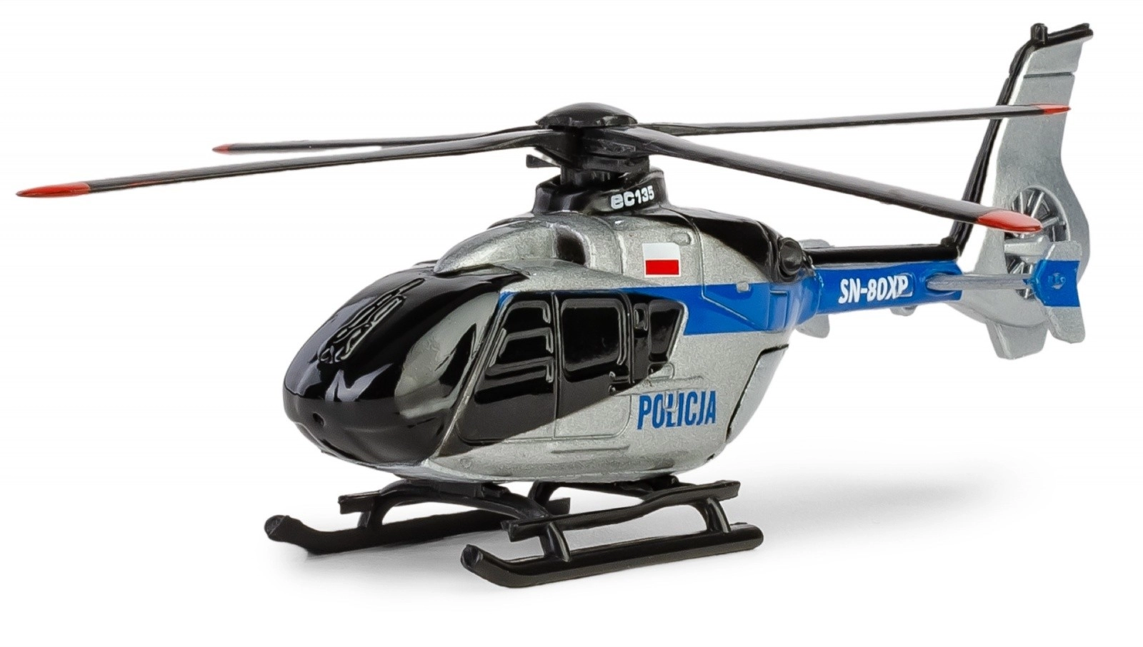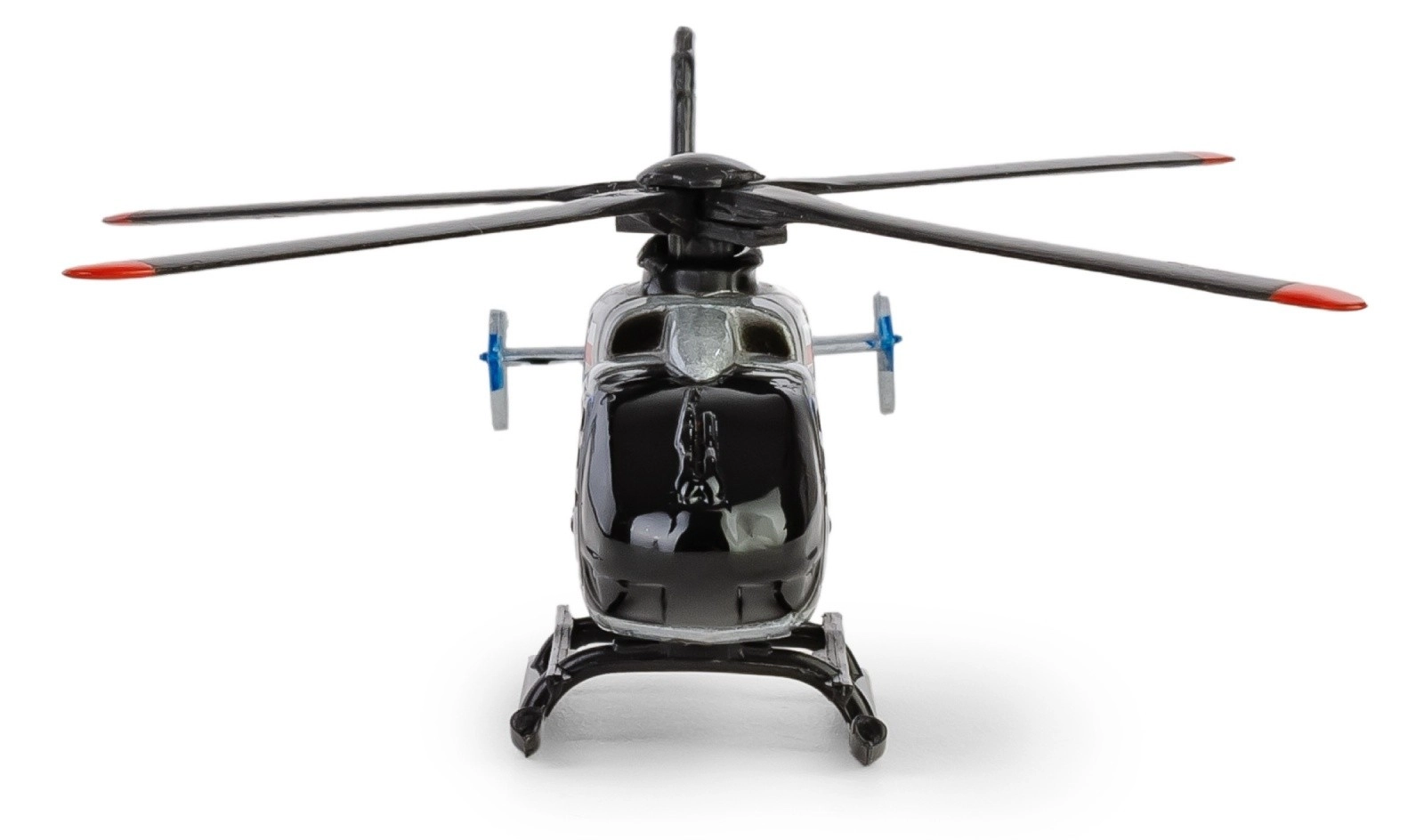 Modello con licenza dell’elicottero di soccorso della polizia che riproduce fedelmente il vero AIRBUS EC135. Grazie alla combinazione di carrozzeria in metallo e dettagli in plastica, appare realistico, mantiene bene la forma ed è piacevole sia da esporre che per giocare. La compatta scala 1:100 fa risparmiare spazio e al contempo valorizza i dettagli.