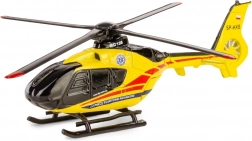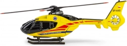 Il modello è realizzato in metallo con elementi in plastica che enfatizzano i dettagli della fusoliera, della coda e dei rotori. Sulla confezione trovi informazioni sulla macchina reale e sull’attività del servizio di elisoccorso.