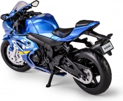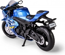 Miniatura fedele della SUZUKI GSX‑R1000 con carenatura dettagliata, decalcomanie e proporzioni accurate per collezionisti e appassionati di supersportive.