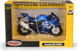 Questo modellino blu della moto sportiva SUZUKI GSX‑R1000 riproduce fedelmente le linee iconiche, la carenatura e i dettagli di freni e scarico. La combinazione di parti in metallo e plastica di qualità garantisce resistenza e un aspetto accattivante, ideale sia per l'esposizione sia per un gioco leggero.