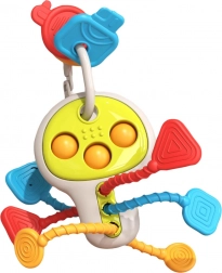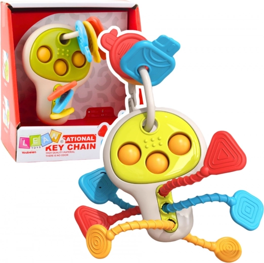 - giocattolo sensoriale a forma di chiavi, elementi mobili e ciondoli colorati, superfici testurizzate