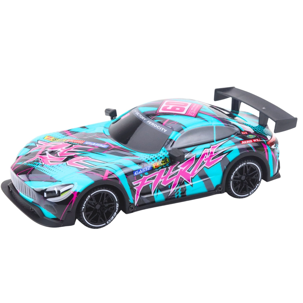 Divertente e facile da controllare auto da corsa RC in colore verde con dettagli rosa che entusiasmerà piccoli e grandi piloti. Con il telecomando gestisce marcia avanti/indietro, sterzata a sinistra/destra, derapata laterale e acrobatiche giravolte. A rendere l’esperienza più realistica pensa il clacson (buzzer) con effetti sonori.
