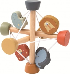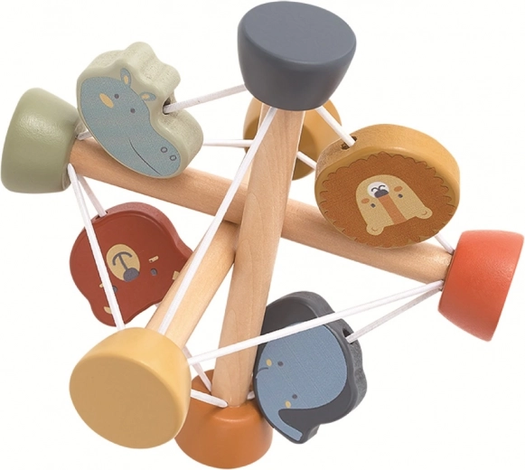 La sfera attiva Safari combina legno di qualità con elastici flessibili e un design amichevole degli animali (leone, elefante, ippopotamo e orso). I bambini allenano in modo ludico la presa, la coordinazione e la pazienza. I colori pastello e le finiture lisce catturano l’attenzione e favoriscono la concentrazione.