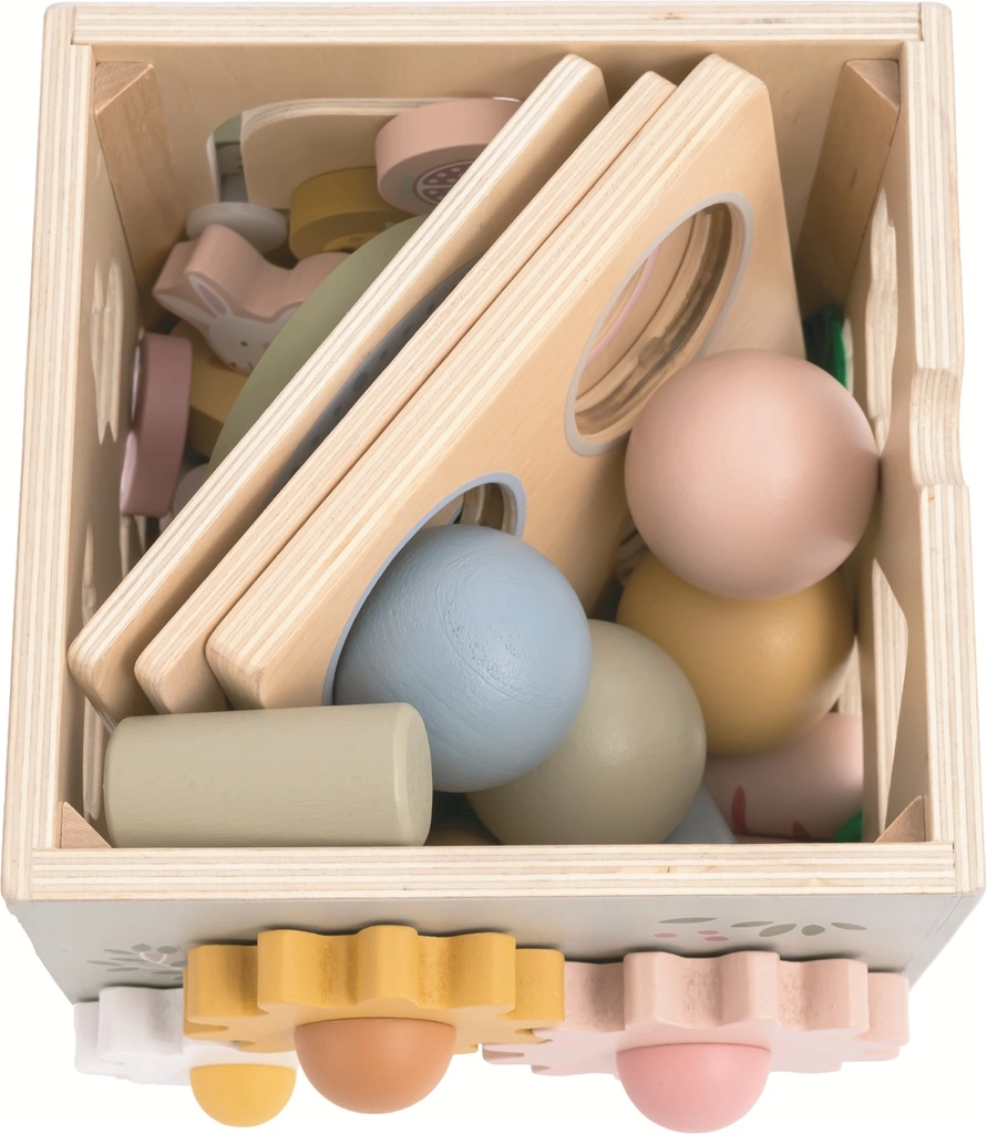 Questo cubo motorico in legno di alta qualità, con delicate tonalità pastello e simpatiche illustrazioni di animali, stimola la naturale curiosità dei bambini. Grazie ai 5 lati di gioco e ai coperchi intercambiabili, offre tanti modi per imparare e divertirsi: dalla classificazione di forme e animaletti, all’assemblaggio e rotazione, fino ai primi conteggi. Dopo il gioco, riponi facilmente tutti i pezzi all’interno per mantenere la casa in ordine.