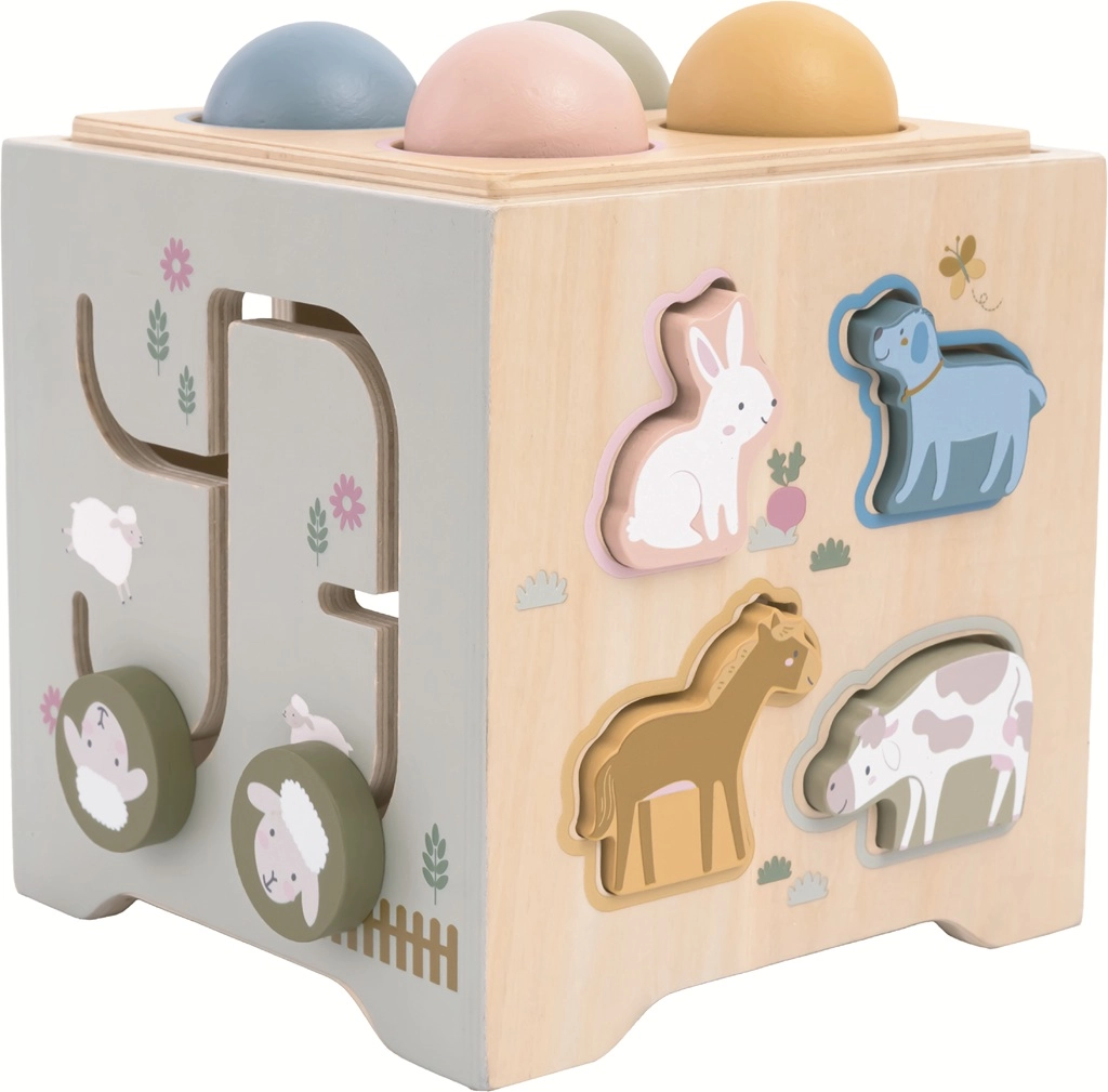 Scopri l’apprendimento divertente con il cubo motorico in legno a tema fattoria di 2Kids Toys! Offre ai bambini una vasta gamma di attività che sviluppano la motricità fine, il pensiero logico e la coordinazione mano-occhio. Ogni lato propone una sfida diversa: incastri di forme e animaletti, ingranaggi, prime attività di conteggio e gioco con martelletto. I coperchi intercambiabili ampliano le possibilità di gioco e tutti i pezzi possono essere riposti all’interno del cubo.