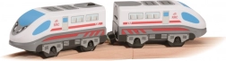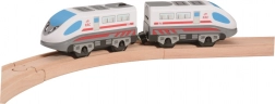 Moderno treno ad alta velocità a batteria per ferrovie di legno che farà felice ogni piccolo macchinista. Elegante convoglio blu e bianco con dettagli realistici, aggancio magnetico e marcia autonoma offre tanta azione e sviluppa motricità fine, coordinazione e fantasia. Compatibile con la maggior parte dei binari di legno standard.