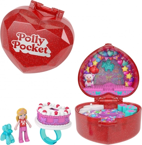 Festeggia l’80º anniversario di Mattel con l’incantevole set Polly Pocket in un cuoricino rosso rubino! All’interno ti aspetta una mini scena di festa con micro-bambolina Polly, regali e un animaletto palloncino. È incluso anche un anellino regolabile a tema torta, sul quale si può fissare la bambolina e portare il divertimento ovunque. Il compatto a forma di cuore è ideale per i viaggi, ha un design scintillante e tanti dettagli adorabili per un gioco creativo.