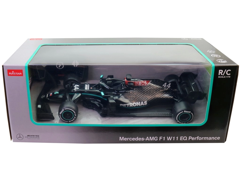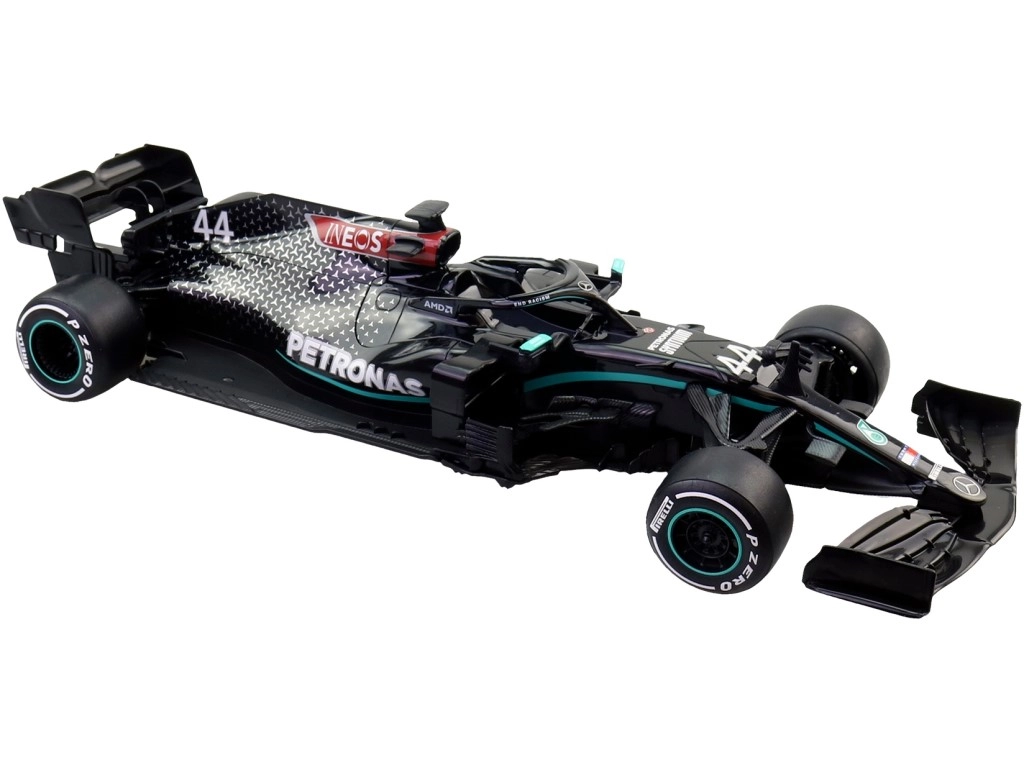 L’aerodinamica dettagliata, gli pneumatici slick e i colori autentici della MERCEDES‑AMG F1 W11 EQ amplificano il piacere di guida e l’effetto scenico su uno scaffale.