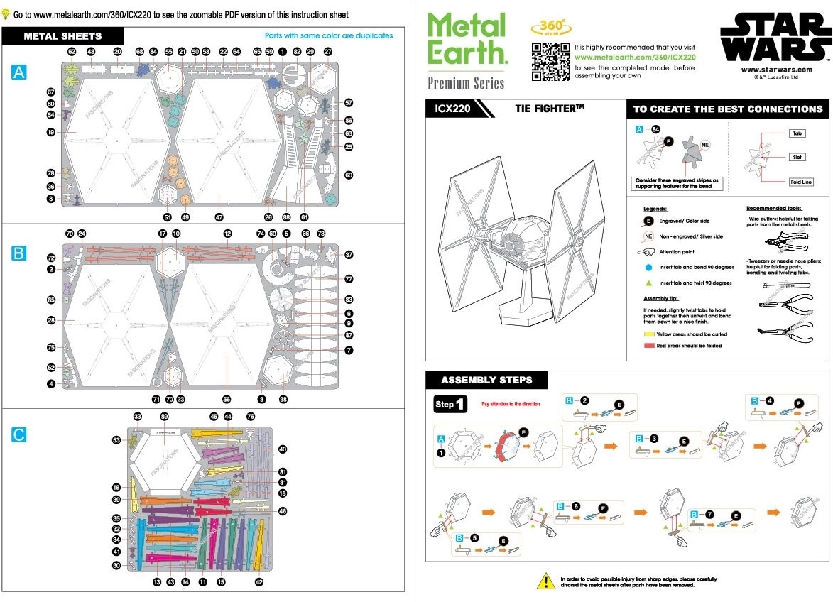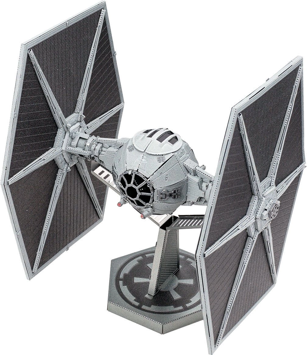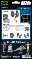 Crea il tuo modello metallico della leggendaria caccia TIE Fighter dall’universo di Star Wars. Da fogli d’acciaio piani assemblerai, grazie ad astuti incastri e alla precisa incisione laser, un impressionante modello 3D che risalta sia su una mensola che sulla scrivania.