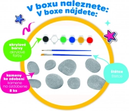 Scopri il set creativo per dipingere sui sassolini, che permette ai bambini di trasformare semplici ciottoli in originali opere d’arte. Il set include tutto il necessario per creare subito – pennelli, colori e sassolini, per sviluppare fantasia, motricità fine e creatività. Adatto ai bambini dai 4 anni.