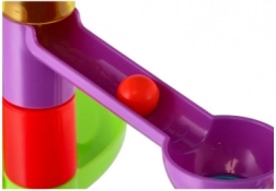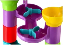 Questa pista a biglie in plastica con 55 pezzi permette ai bambini di costruire percorsi variegati e di provare quale biglia sarà la più veloce. Grazie ai diversi ostacoli e agli elementi rotanti, ogni corsa è diversa e carica di suspense. Il set stimola creatività, pazienza e coordinazione occhio–mano.