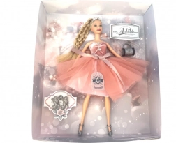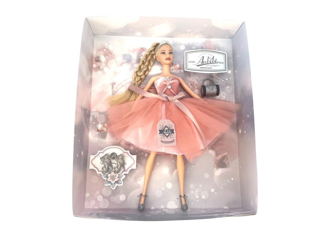 Questa graziosa bambola con vestito rosa farà felice ogni piccola principessa. Grazie alla comoda altezza di circa 30 cm, si tiene e si trasporta facilmente, diventando una compagna preferita a casa e in viaggio. I delicati dettagli del viso e l'abito accuratamente realizzato conferiscono alla bambola un aspetto realistico e dolce.