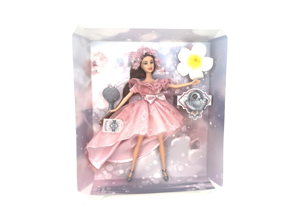 Questa graziosa bambola con abito rosa è una compagna perfetta per il gioco di tutti i giorni. Grazie ai dettagli delicati e alla piacevole fattura diventerà presto il giocattolo preferito, ispirando i bambini a creare storie tutte loro.